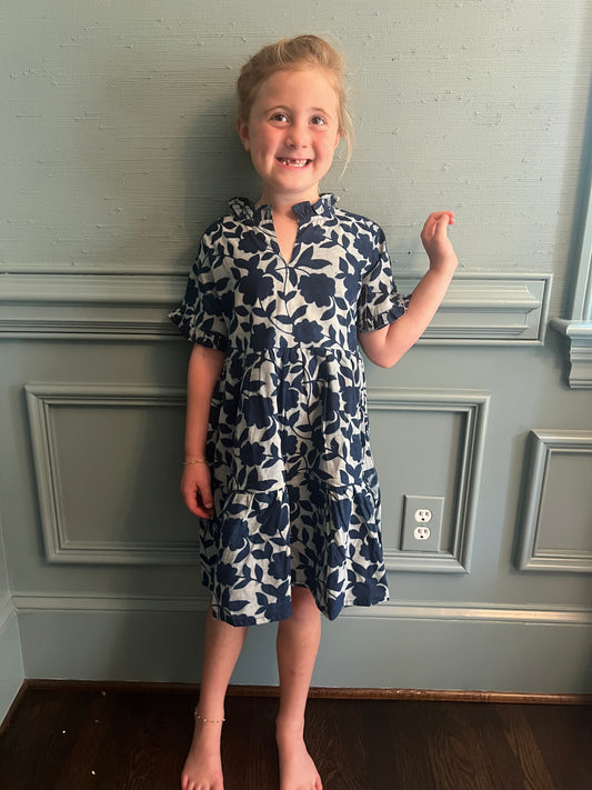 Marie Girls Dress - Navy Floral